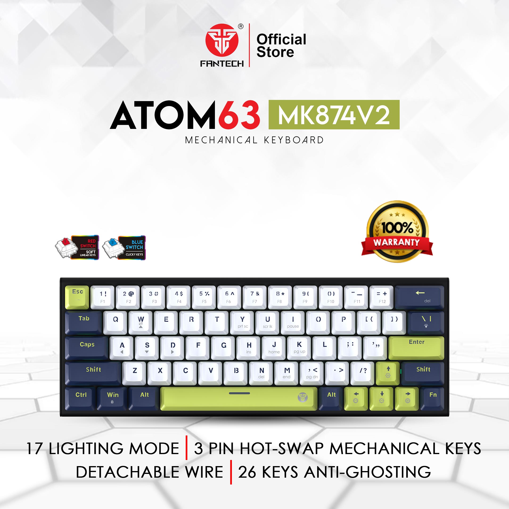 ATOM63 MK874V2 MORI EDITION MECHANICAL KEYBOARD – WHITE