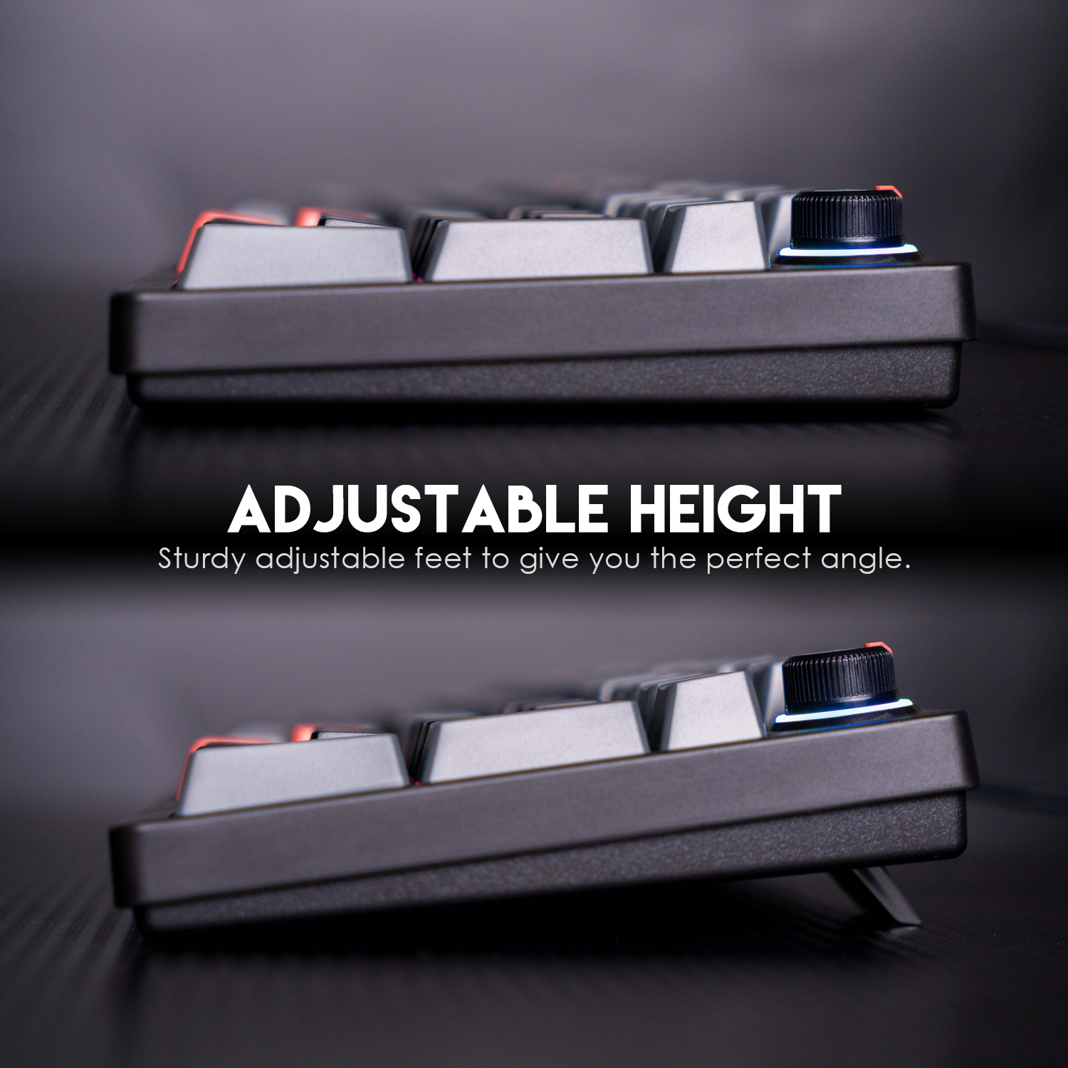ATOM96 offers a full size experience in a more compact size. Complemented with dedicated volume knob, full keys anti-ghosting, and adjustable 2-step height to enhance your experience!