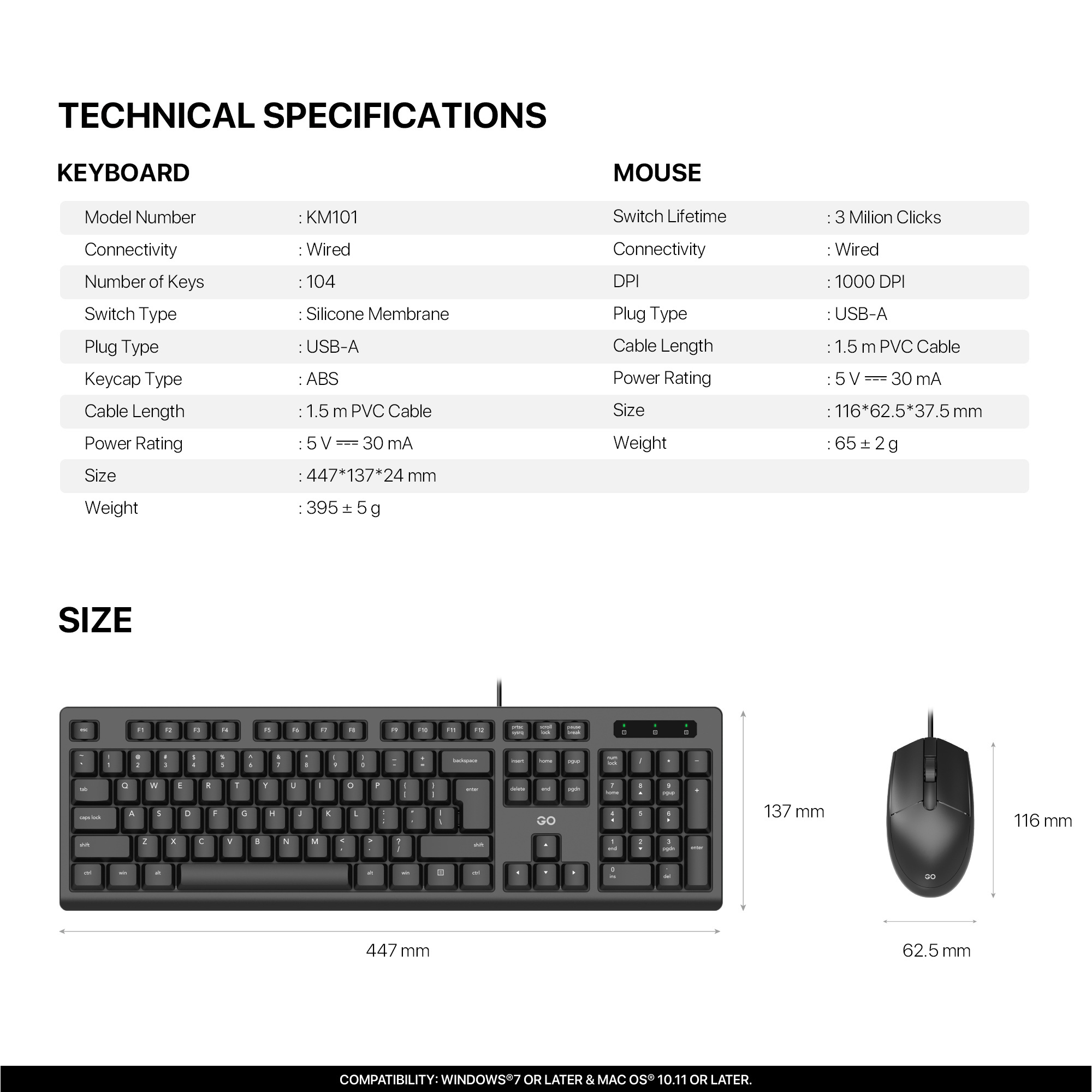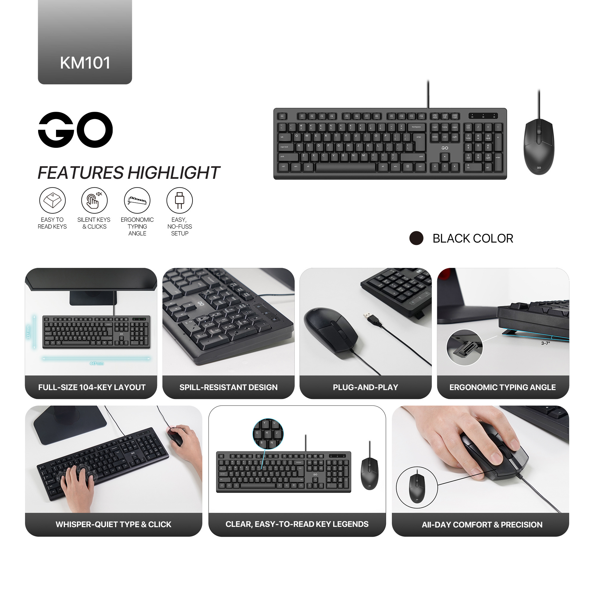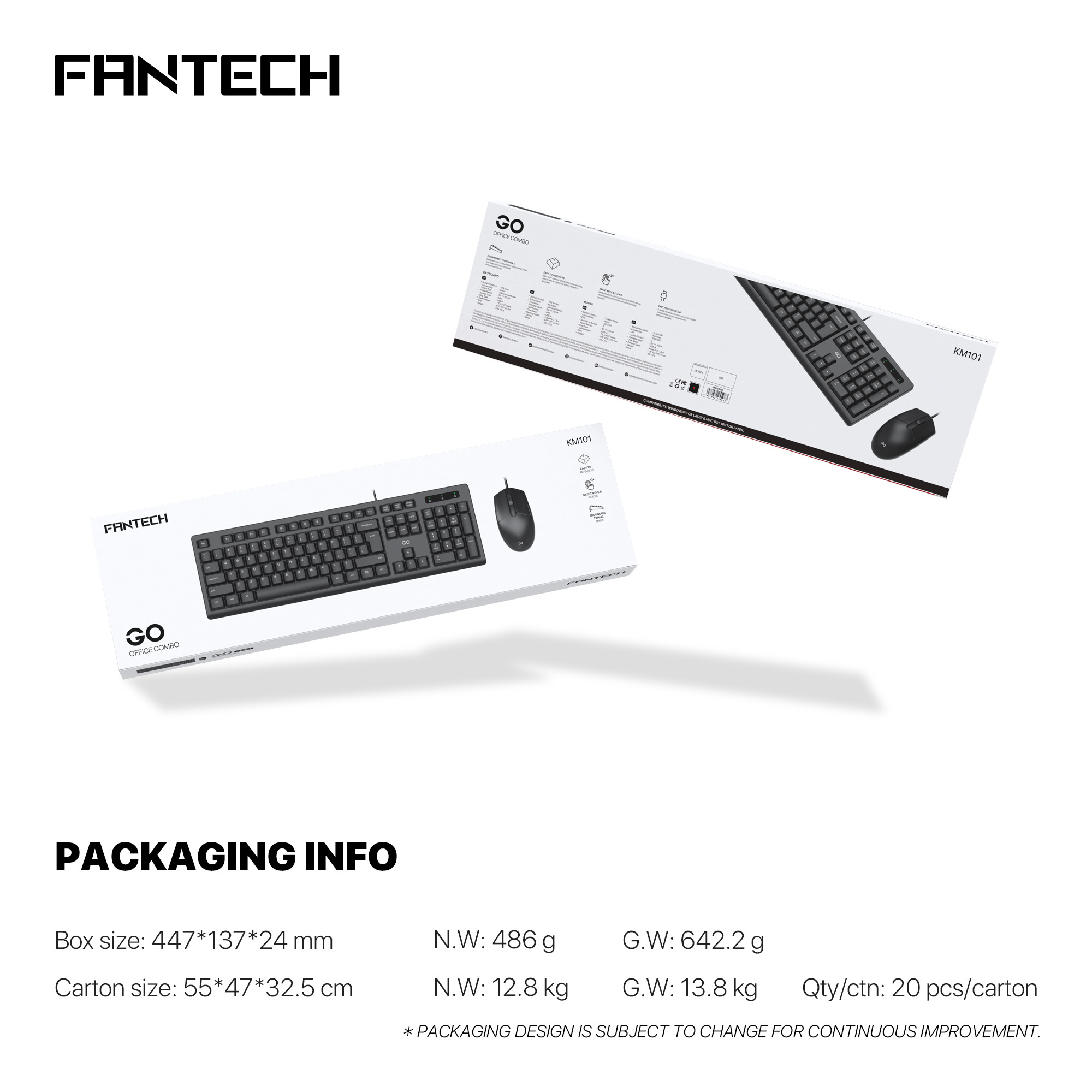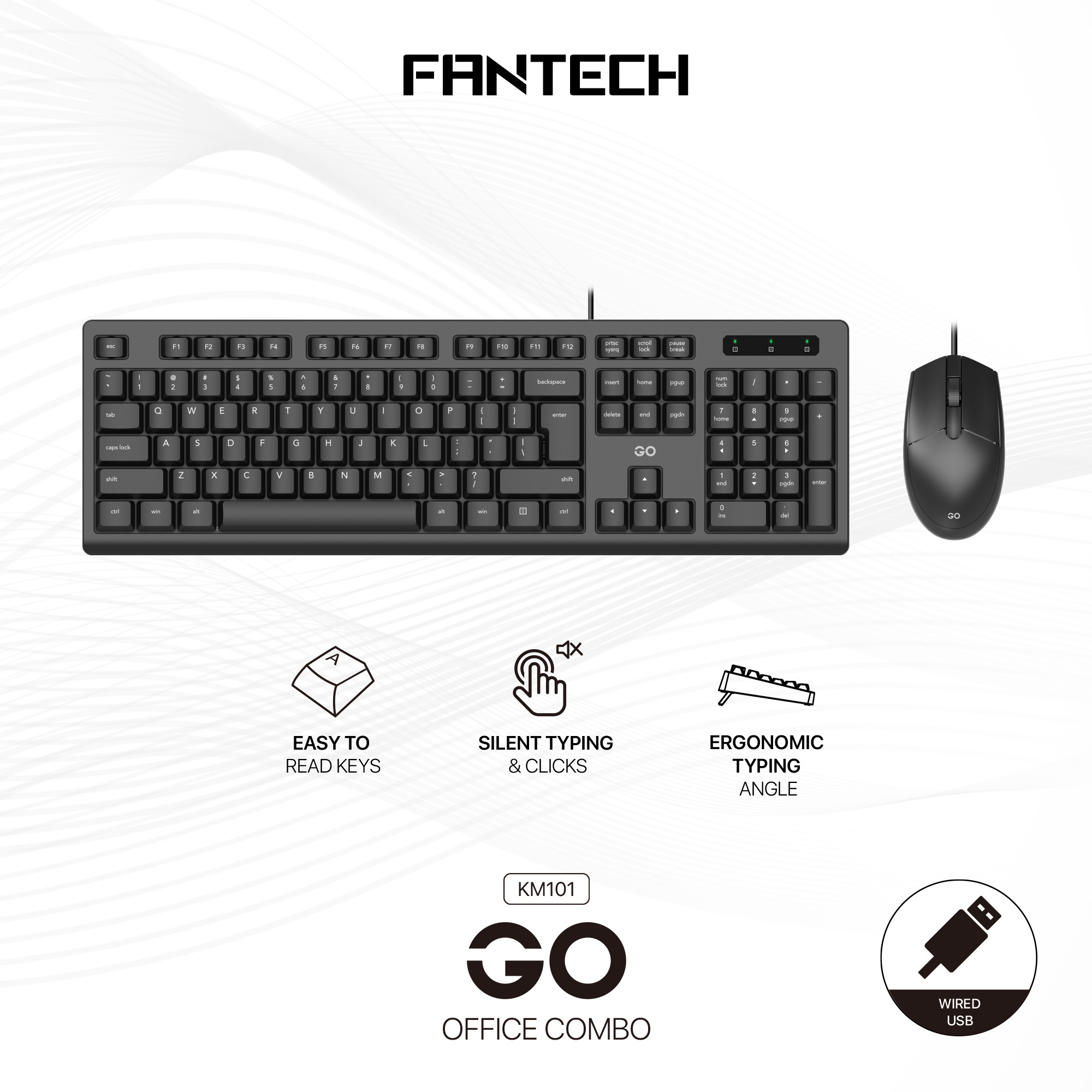 Fantech KM101 GO Office Combo Mouse & Keyboard with Ergonomic Typing Angle and Silent Clicks