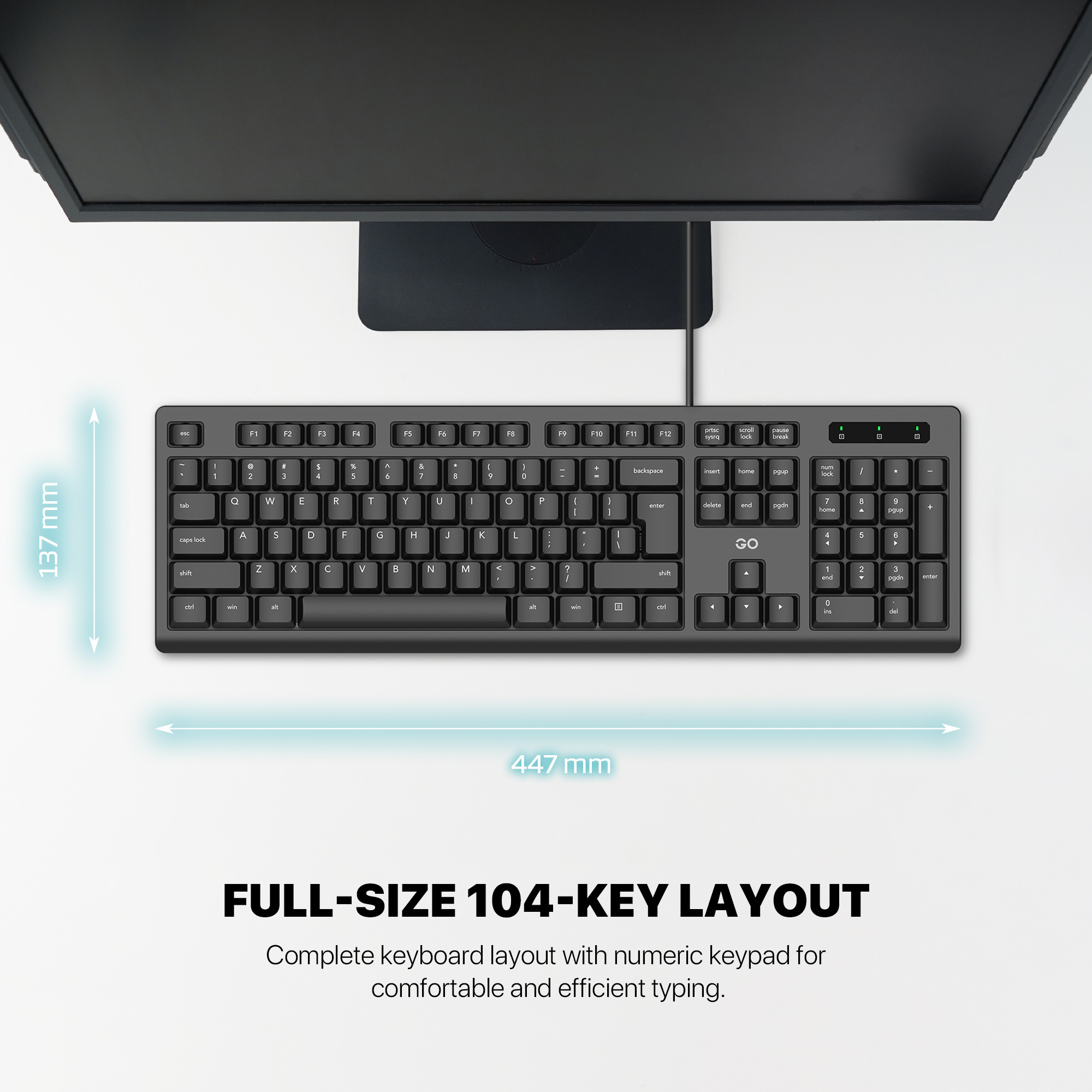 - Full size 104 key layout complete keyboard layout with numeric keypad for comfortable and efficient typing.