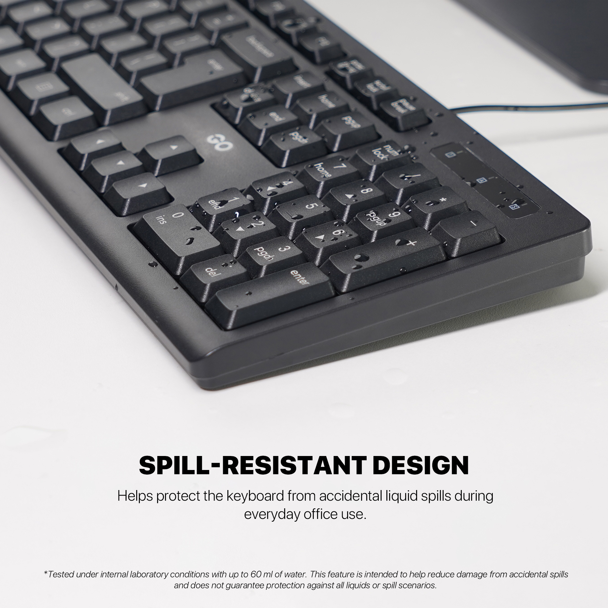 - Spill resistant design helps protect the keyboard from accidental liquid spills during everyday office use.