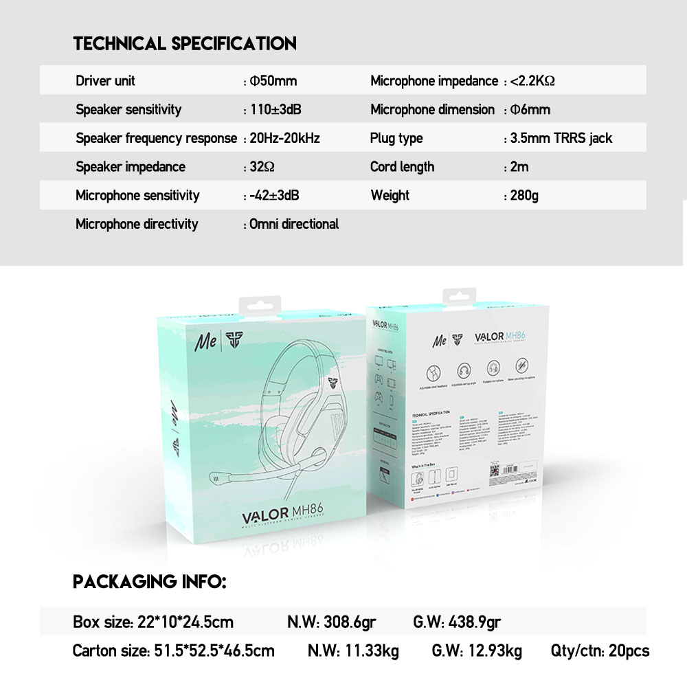 MH86 VALOR MULTI PLATFORM GAMING HEADSET MINT EDITION