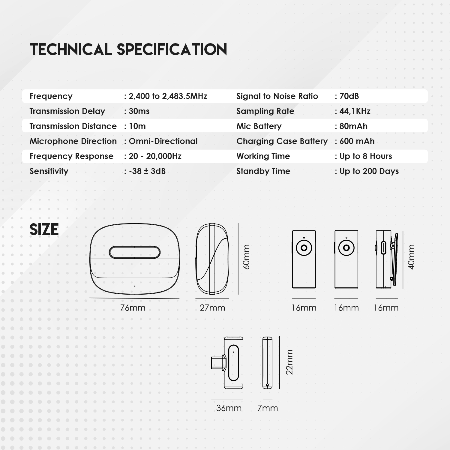 - Mic Battery: 80mAH
